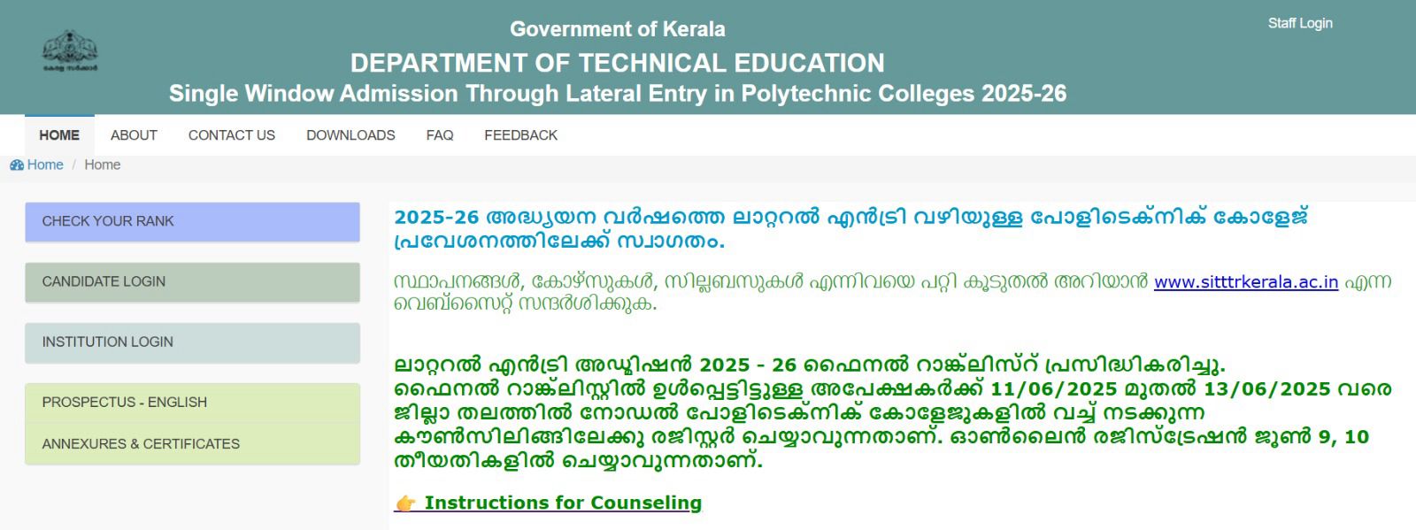 | Polytechnic Lateral Entry Counselling 2025 | View |