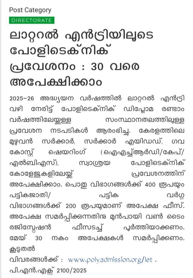 | Polytechnic Lateral Entry Admission 2025 | View |